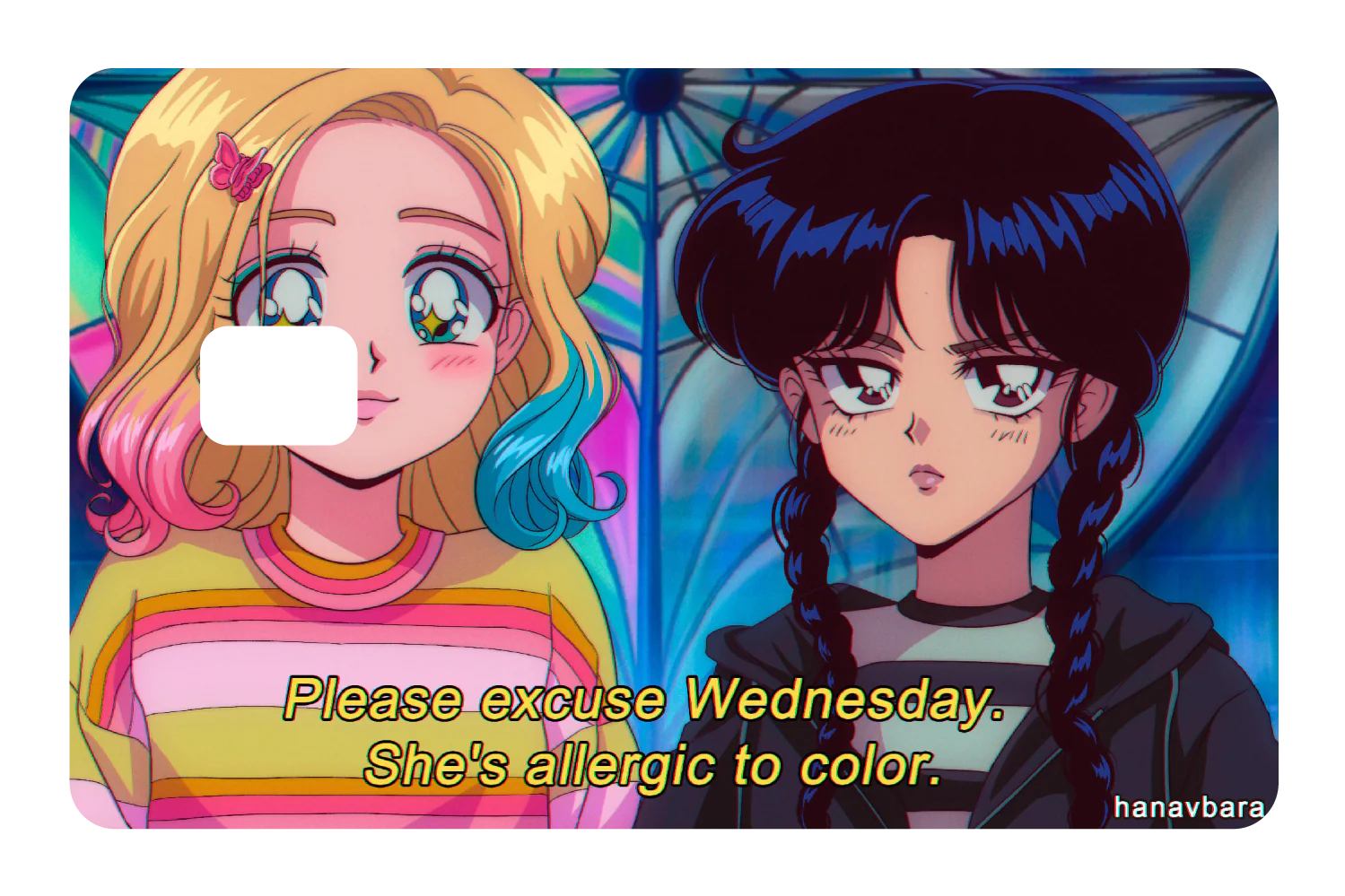 Instantly customize your bank cards, metro passes, gift cards and more with this design: Wednesday and Enid created by Hanavbara